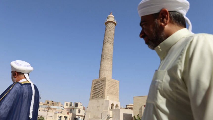 The Nice Mosque of al-Nuri and its leaning minaret have reopened in Iraq, eight years after being destroyed by ISIL. Supply hyperlink